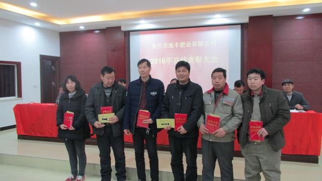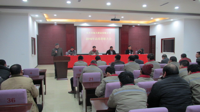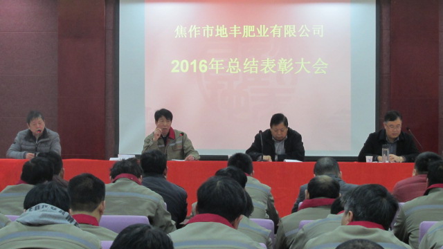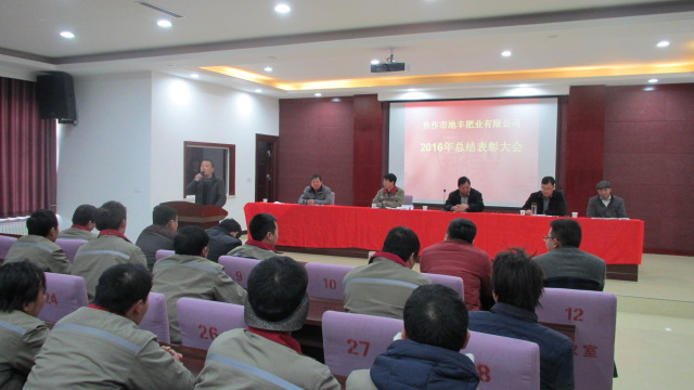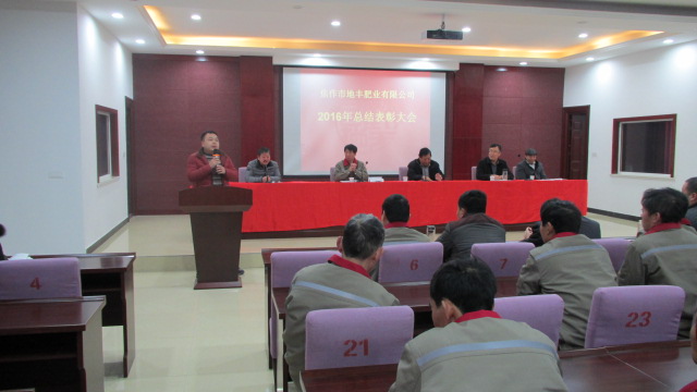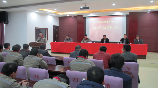 1月22日,焦作市地豐肥業(yè)有限公司2016年度總結(jié)表彰大會在三樓多功能廳隆重舉行。公司董事長李戰(zhàn)通,生產(chǎn)副總褚萬里、銷售副總林現(xiàn)仁等領導出席會議。